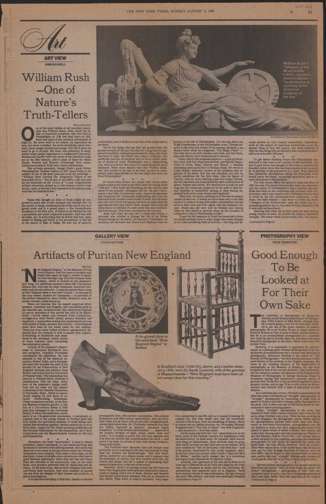 Απόκομμα, χαρτί, 56×36 εκ., στα αγγλικά, δημοσίευσης άρθρου αναφερόμενου στη ζωή και στο εικαστικό έργο του William Rush.