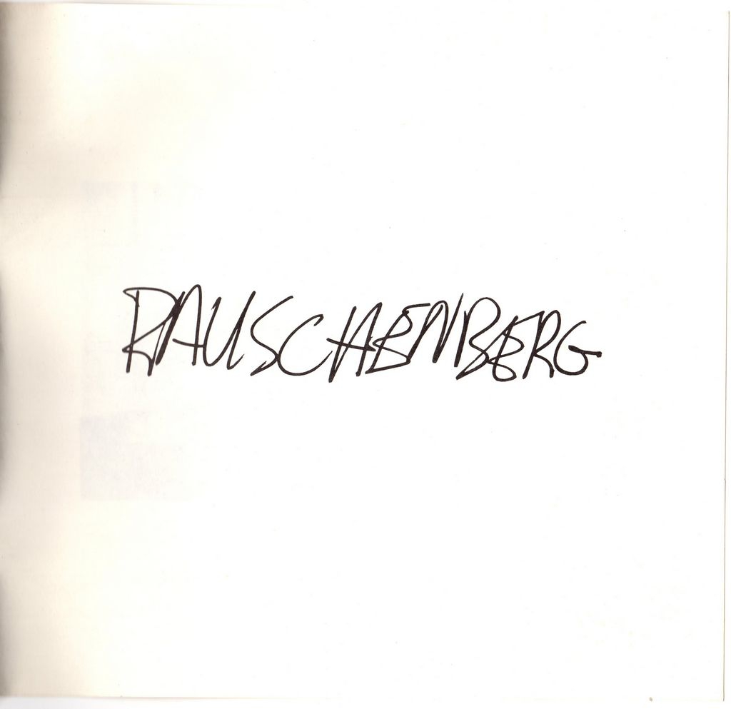 Έντυπο, χαρτόνι, 8 φφ, 19×20.5 εκ., στα ελληνικά και αγγλικά, έκθεσης του Robert Rauschenberg. Περιέχει κείμενα για τον καλλιτέχνη, κρίσεις του για το έργο του, λίστα έργων του που παρουσιάζονται στην έκθεση.
