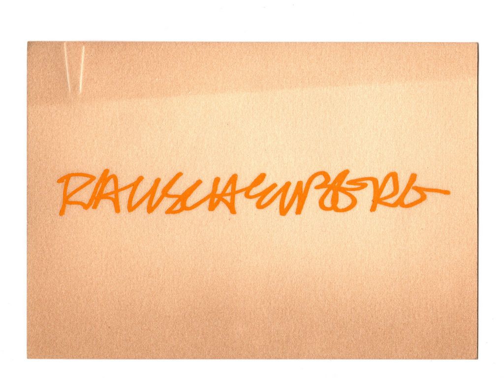 Πρόσκληση, χαρτόνι, 11×15.5 εκ., στα γαλλικά, εγκαινίων έκθεσης Robert Rauschenberg, η οποία διεξάγεται στην γκαλερί Sonnabend στο Παρίσι.