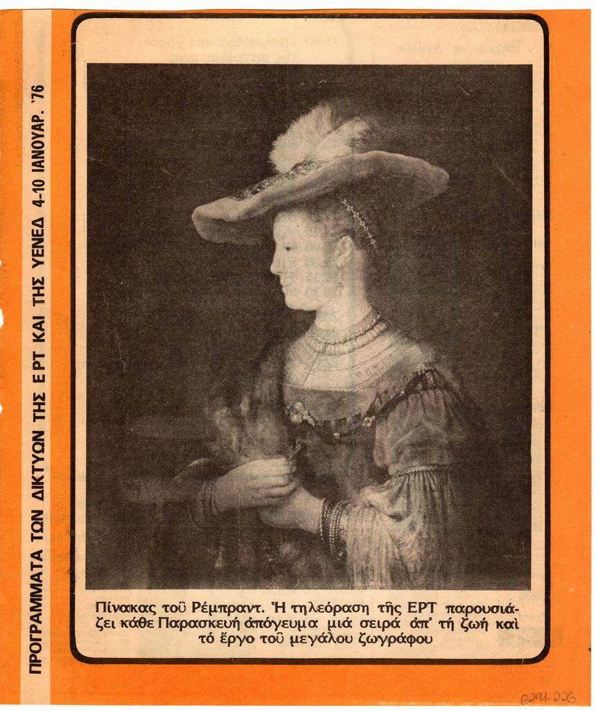 Απόκομμα, χαρτί, 24.5×21 εκ., στα ελληνικά, δημοσίευσης αναπαραγωγής έργου του Rembrandt, α/μ.