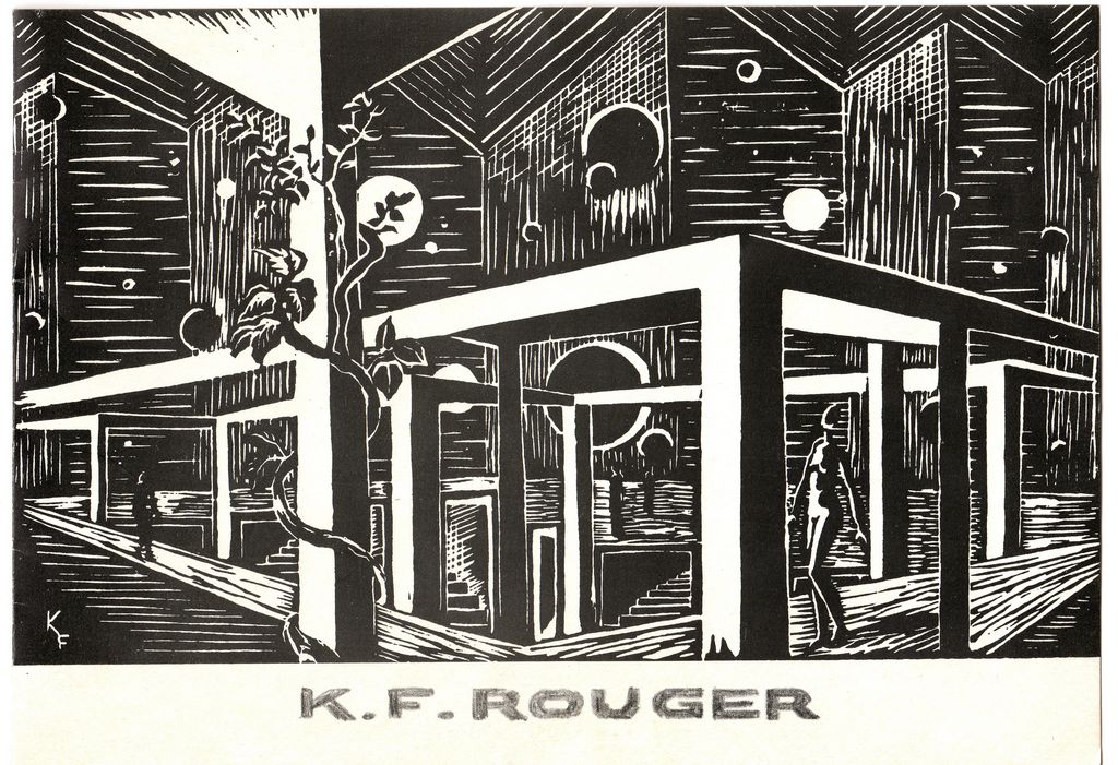 Έντυπο-πρόσκληση, χαρτόνι αναδιπλωμένο, 17×24 εκ., στα ελληνικά, έκθεσης Karl Rouger, η οποία διεξάγεται στο Καλλιτεχνικό Πνευματικό Κέντρο Ώρα στην Αθήνα. Περιέχει κείμενο για τον καλλιτέχνη και το έργο του από την Τατιάνα Γκρίτση-Μιλλιέξ.