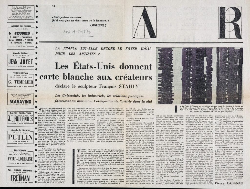 Απόκομμα, έντυπο, χαρτί, 33,5×42 εκ., όπου δημοσιεύεται, στα γαλλικά, άρθρο του Pierre Cabanne.