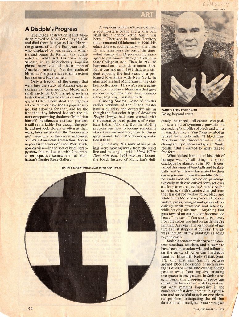 Απόκομμα, χαρτί, 28×21 εκ., στα αγγλικά, δημοσίευσης άρθρου αναφερόμενου στο εικαστικό έργο του Leon Polk Smith. Αναγράφονται λεπτομέρειες.