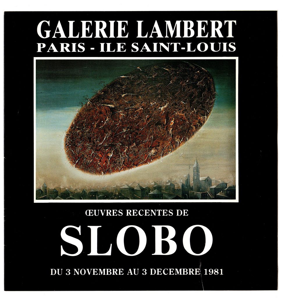 Έντυπο, χαρτόνι, 4 φφ, 21×21 εκ., στα γαλλικά, έκθεσης του Slobo. Περιέχει κείμενο για τον καλλιτέχνη και το έργο του και βιογραφικό σημείωμα.