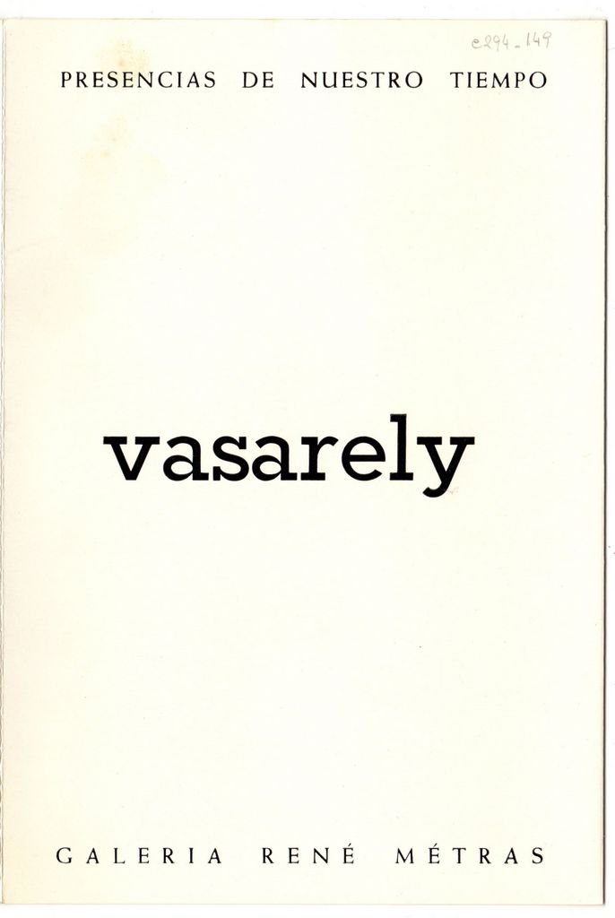 Έντυπο, στα ισπανικά, χαρτόνι ιλουστρασιόν, τετράπτυχο, 23,0×15,5 εκ. Φυλλάδιο της ατομικής έκθεσης έργων του Ούγγρου εικαστικού καλλιτέχνη Victor Vasarely που διοργανώθηκε στη Βαρκελώνη το 1969.