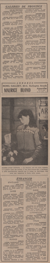 Απόκομμα, έντυπο, χαρτί, 60,0×42,0 εκ., όπου δημοσιεύονται, στα γαλλικά, αναγγελίες εκθέσεων της περιόδου στο Παρίσι. Στο ίδιο τεκμήριο: Raymond Charmet “Fauve jusqu’au bout. Maurice Vlaminck a refusé toute les écoles”, Lucien François “Le Tailleur et mort, vive le tailleur” και αναπαραγωγές έργων.