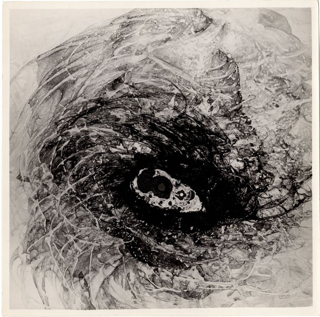 Φωτογραφία, α/μ, φωτογραφικό χαρτί, 17,7×17,9 εκ. Αναπαραγωγή έργου του Gianni Dova. Στην πίσω όψη, επιγραφές με τα στοιχεία του έργου και σφραγίδα του στούντιο φωτογράφησης Bacci Attilio.