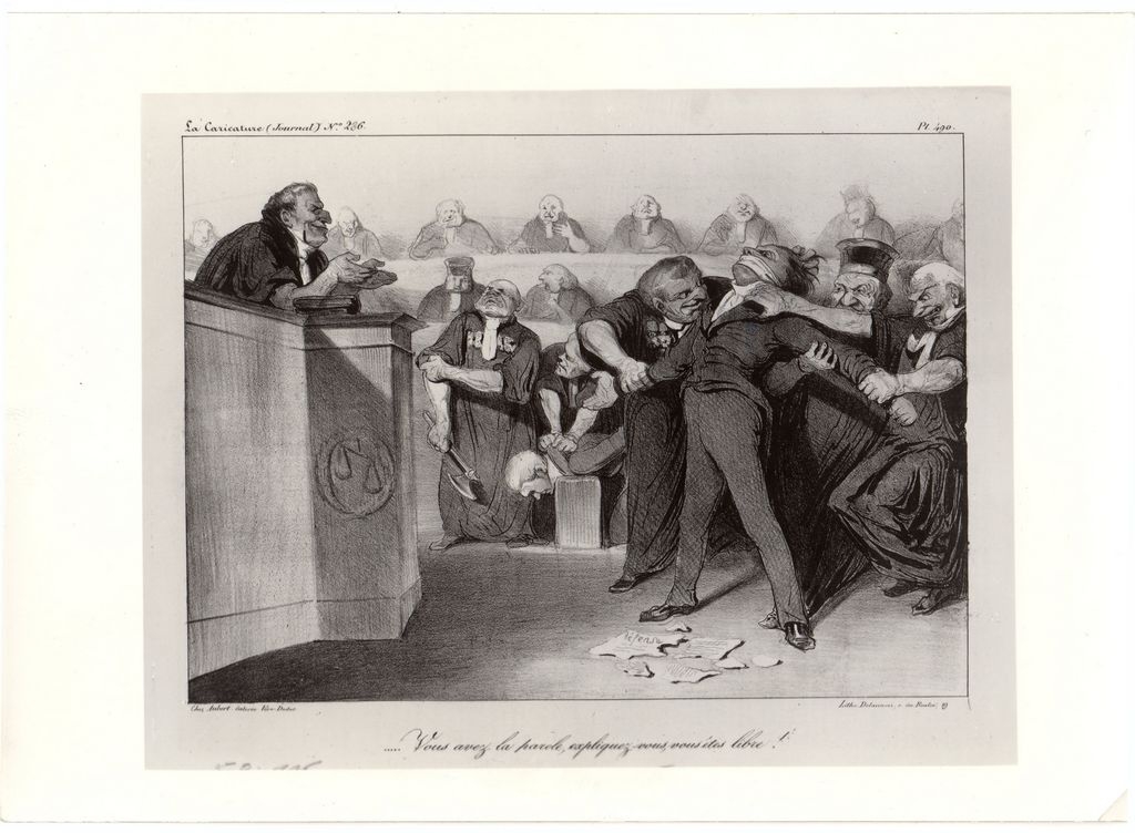 Αναπαραγωγή έργου του H. Daumier “Vous avez la parole, expliquez vous, vous étes libre!”