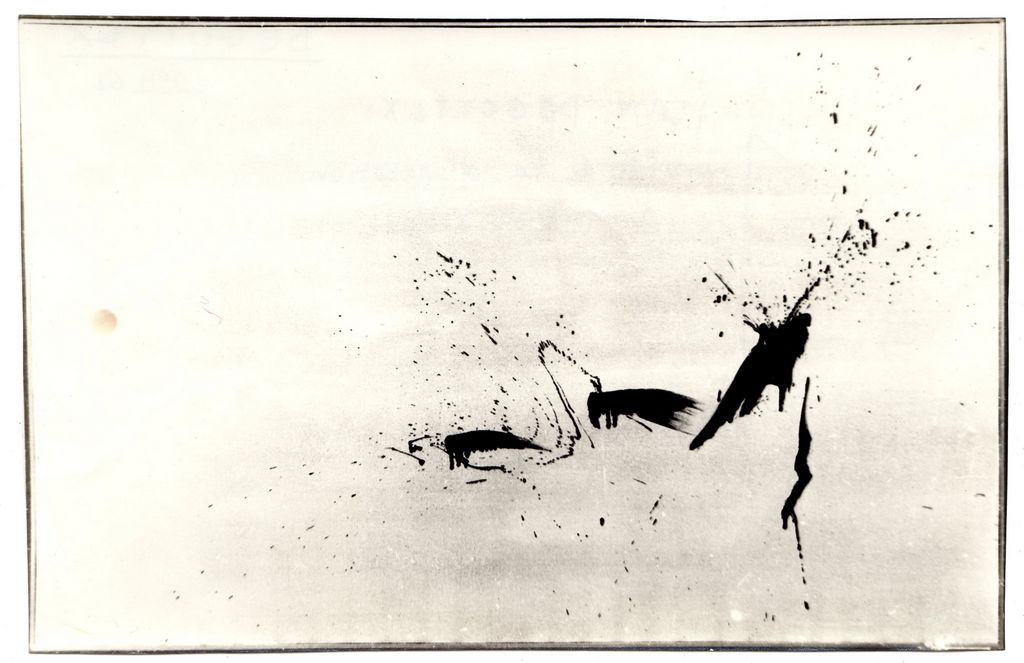 Φωτογραφία, α/μ, φωτογραφικό χαρτί, 13,0×20,2 εκ. Αναπαραγωγή έργου του Jean Degottex. Στην πίσω όψη, επιγραφές με τα στοιχεία του έργου.