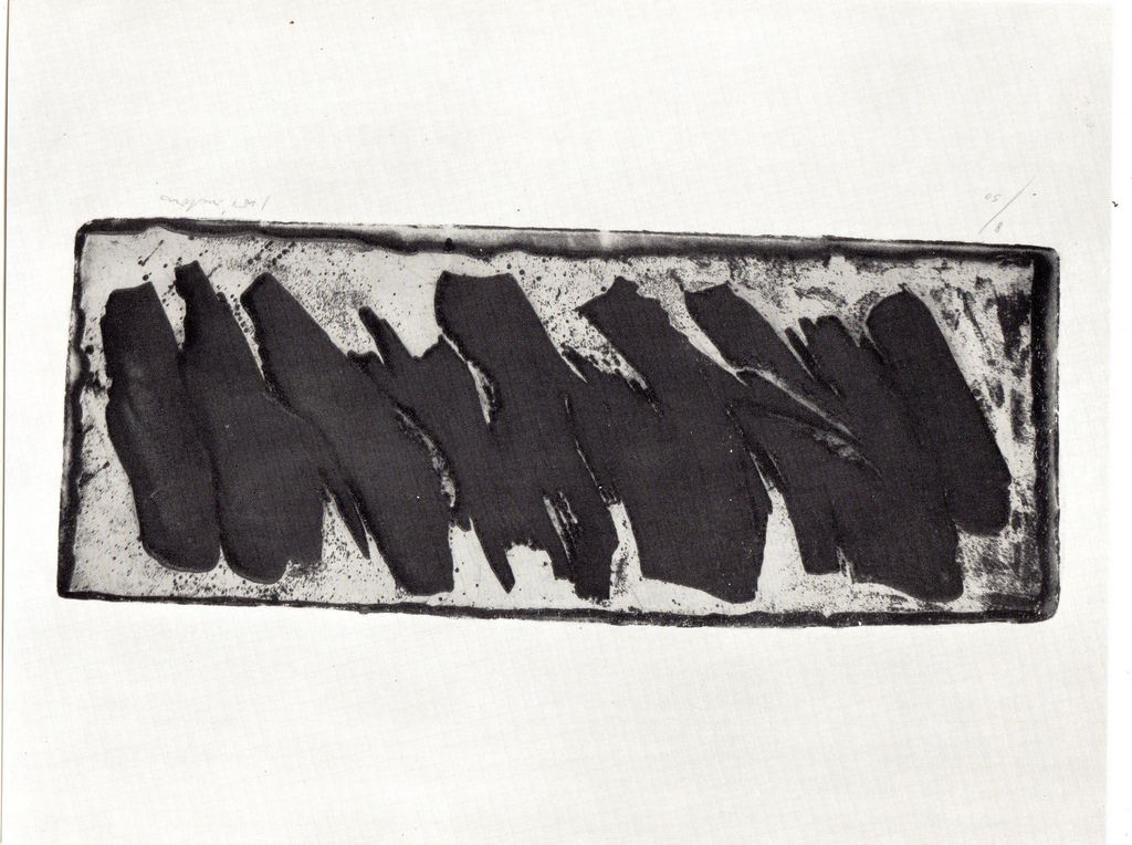 Έντυπο, χαρτί διπλής όψης, 13.5×17.5 εκ., με α/μ αναπαραγωγή έργου του G. Pomodoro.