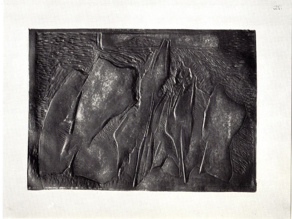 Έντυπο, χαρτί διπλής όψης, 13.5×17.5 εκ., με αναπαραγωγή έργου, α/μ, του G. Pomodoro.
