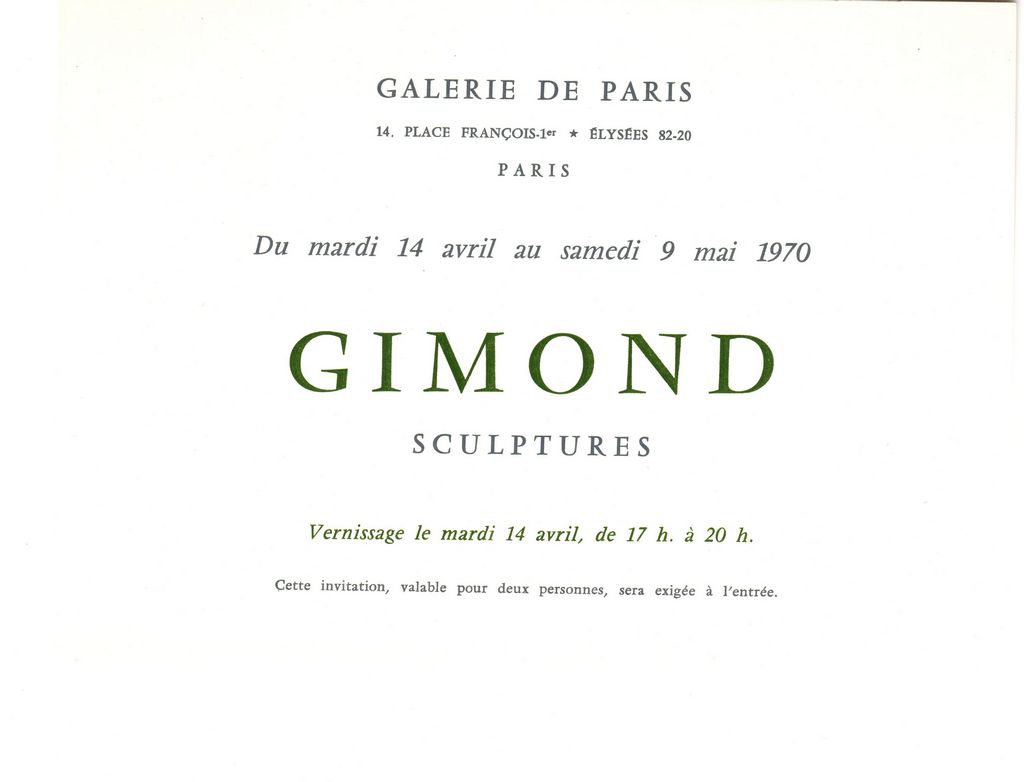 Πρόσκληση, χαρτόνι, 14.5×20.5 εκ., στα γαλλικά, εγκαινίων έκθεσης του Marcel Gimond.