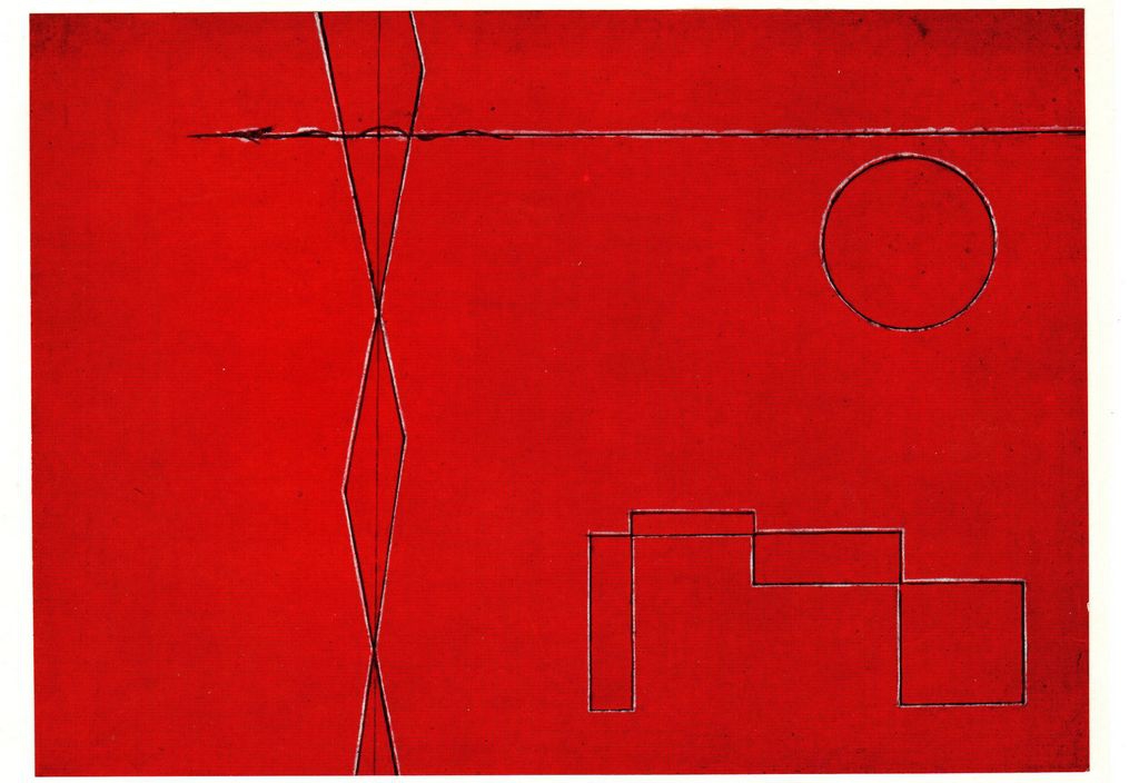 Απόκομμα ταχυδρομικής κάρτας, χαρτόνι, 12×15,5 εκ., με έγχρωμη αναπαραγωγή έργου του Osvaldo Licini.