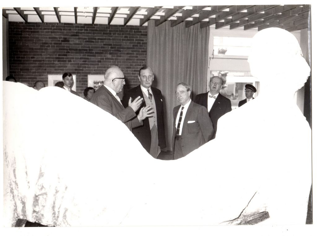 Φωτογραφία του Henry Moore πίσω από έργο του με άλλα πρόσωπα, α/μ, φωτογραφικό χαρτί, 12×18 εκ.