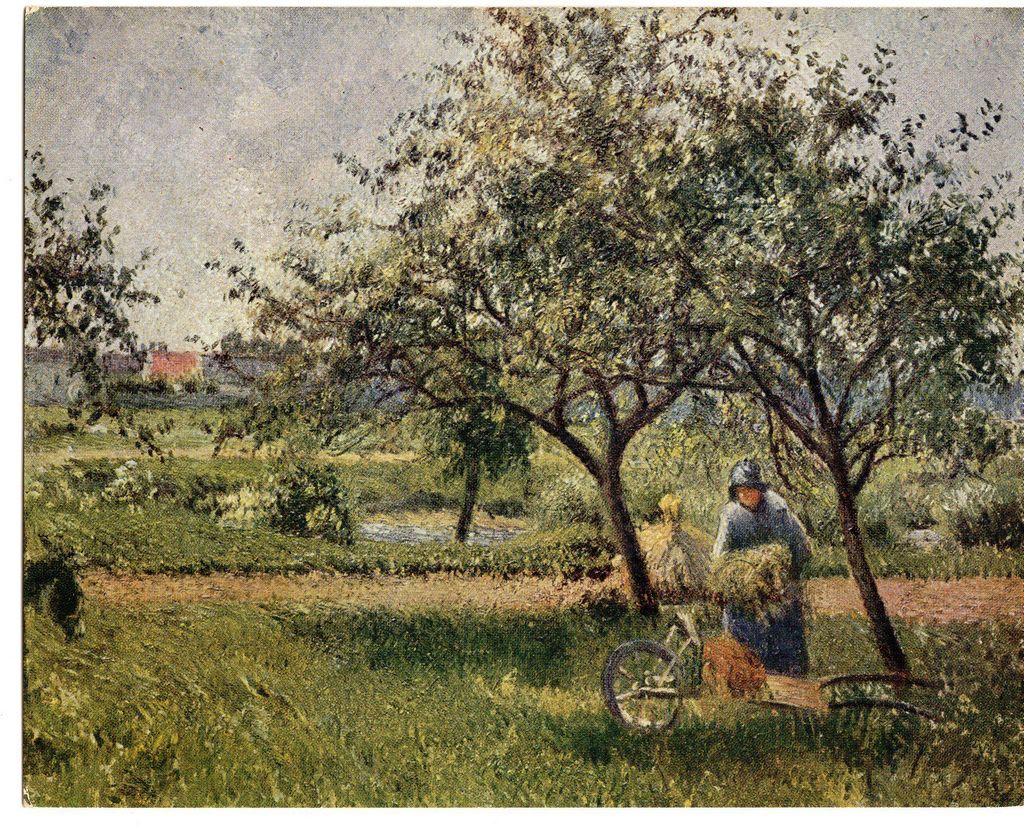 Απόκομμα ταχυδρομικής κάρτας, χαρτόνι, 10.5×15 εκ., με έγχρωμη αναπαραγωγή έργου του Camille Pissarro.