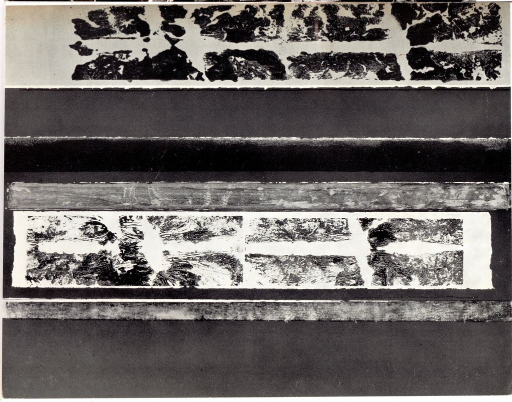 Φωτογραφία, α/μ, φωτογραφικό χαρτί, 13,5 x 17,5 εκ., έργου του Toti Scialoja. Στην πίσω όψη πληροφορίες για τον καλλιτέχνη σε σύντομο βιογραφικό σημείωμα και για το έργο.