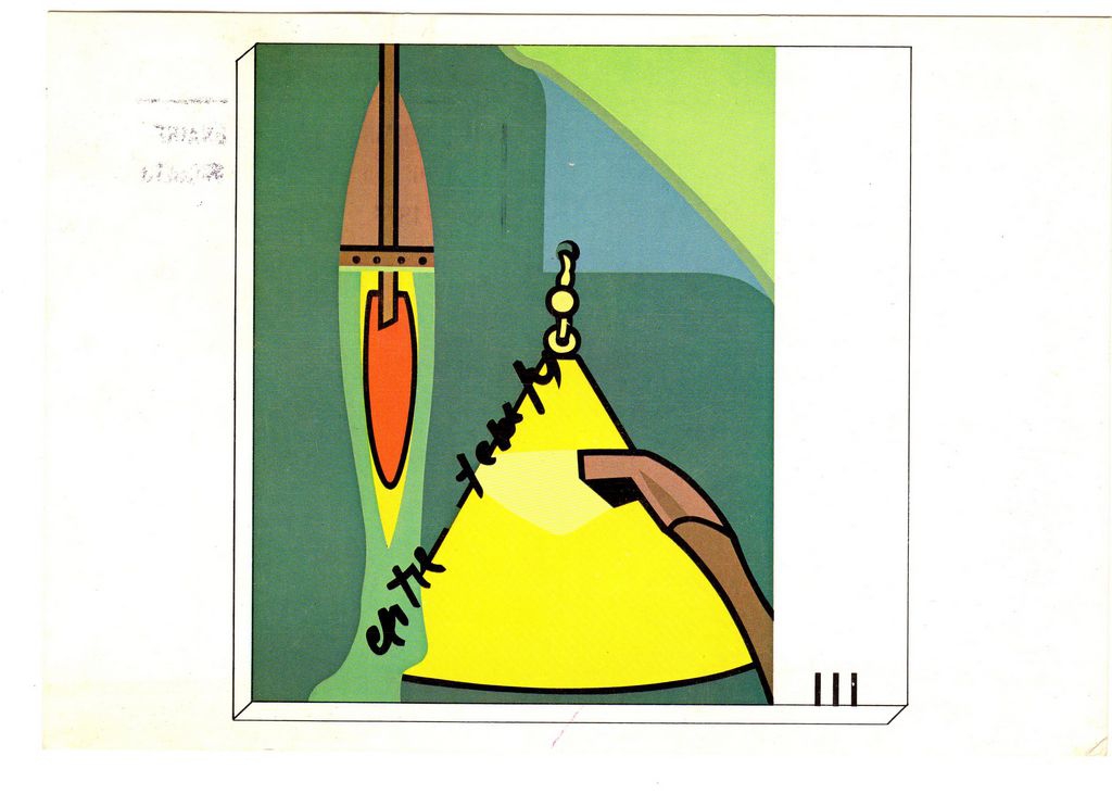 Πρόσκληση, χαρτόνι διπλής όψης, 12 x 17,5 εκ., στα γαλλικά, εγκαινίων έκθεσης στο Παρίσι. Η έκθεση αποτελείται από 5 σεριγραφίες του Hervé Télémaque, εμπνευσμένες από ποίημα του Gérard Legrand και διοργανώνεται σε συνεργασία με την Galerie Le Soleil Noir. Το έντυπο εικονογραφείται και βρέθηκε απεσταλμένο στον Τώνη Σπητέρη.