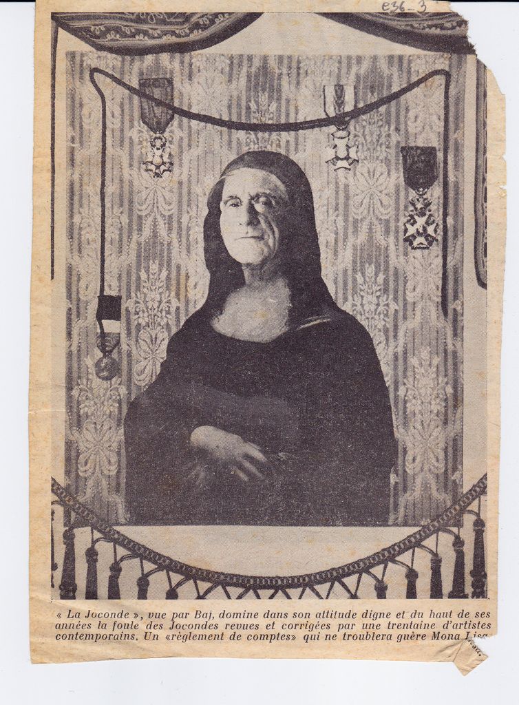 Απόκομμα, έντυπο, χαρτί, 18,0×13,0 εκ., όπου δημοσιεύεται, αναπαραγωγή του έργου του Enrico Baj με τίτλο “La Joconde”. Στην πίσω όψη, αναγγελία της ατομικής έκθεσης του Jose Palmeiro στο Λονδίνο το 1965.