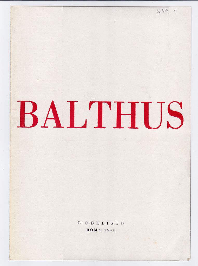 Έντυπο, στα ιταλικά, δίπτυχο, χαρτί ιλουστρασιόν, 23,8×17,0 εκ. Πρόσκληση της ατομικής έκθεσης του Balthus στη Ρώμη το 1958. Περιέχει σύντομο βιογραφικό καλλιτέχνη και κατάλογο έργων έκθεσης.