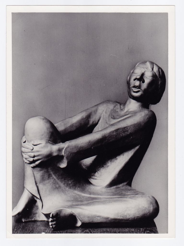 Φωτογραφία, α/μ, φωτογραφικό χαρτί, 13,0×17,0 εκ. Αναπαραγωγή έργου γλυπτικής του Ernst Barlach. Στην πίσω όψη, επικολλημένη ετικέτα με επιγραφές με τα στοιχεία του έργου.