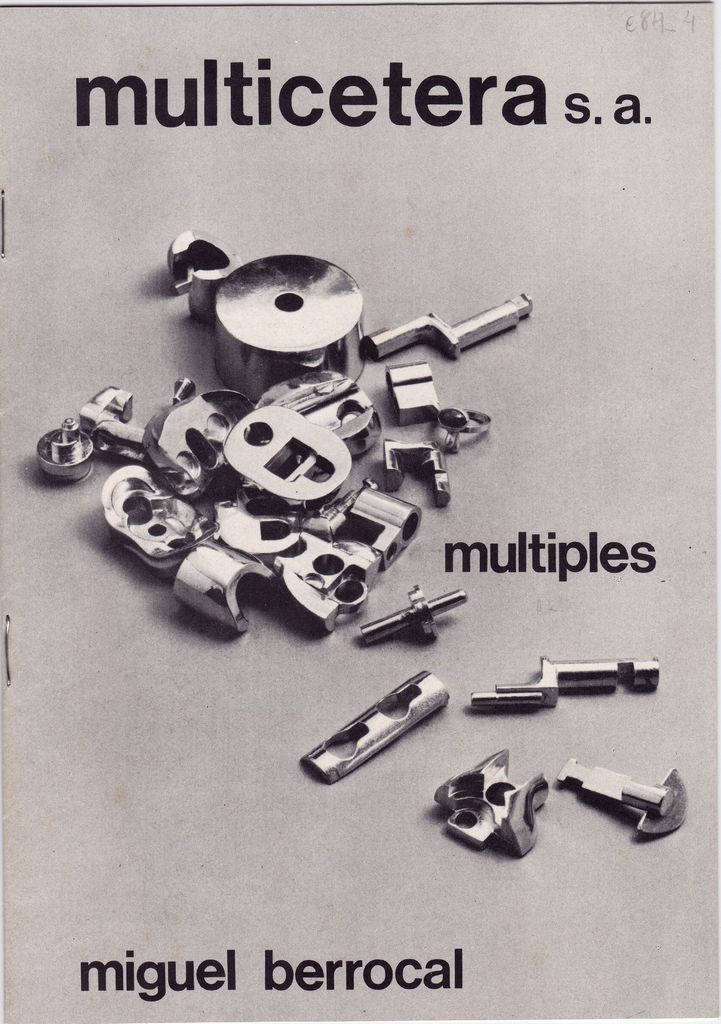 Έντυπο, χαρτί, 6 φφ, 20 x 14 εκ., στα γαλλικά της εταιρίας “Multicetera”. Δίνονται πληροφορίες σχετικά με κυκλοφορία σειράς έργων του Miguel Berrocal με τίτλο “Multiples”.