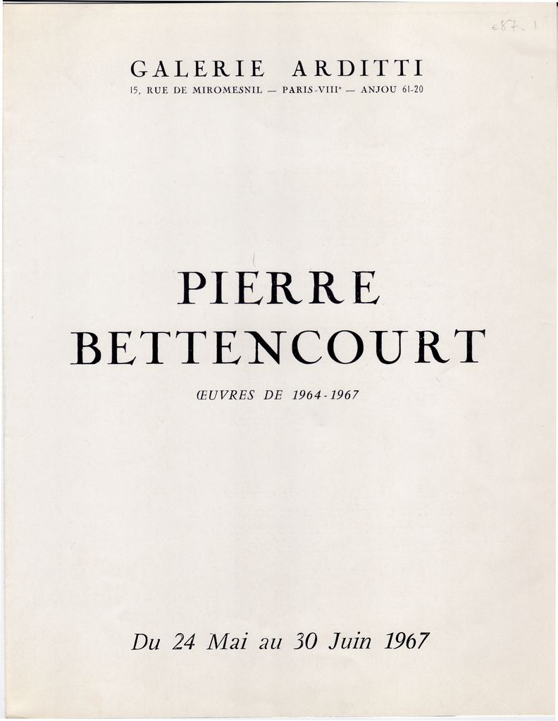 Έκθεση Pierre Bettencourt “Oeuvres 1964-1967”
