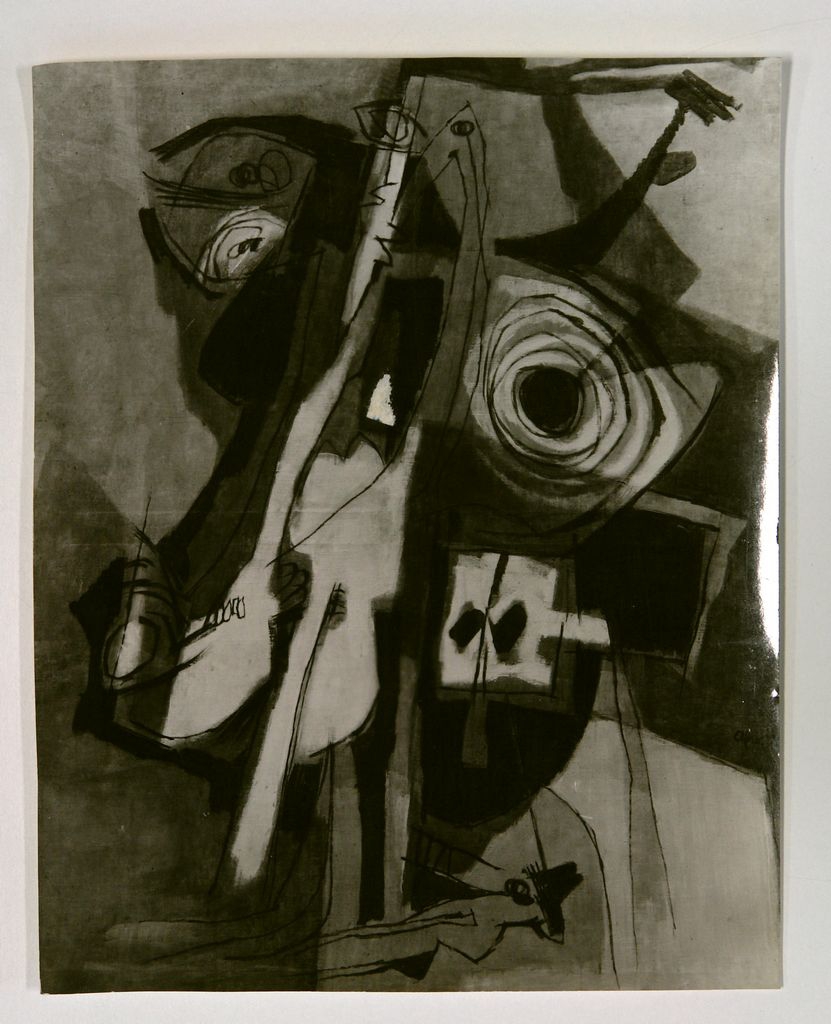 Φωτογραφία, α/μ, φωτογραφικό χαρτί, 19,5×15,5 εκ. Αναπαραγωγή του έργου του ζωγράφου Afro με τίτλο “La sopraffazione”, 1952. Στην πίσω όψη, επιγραφές.