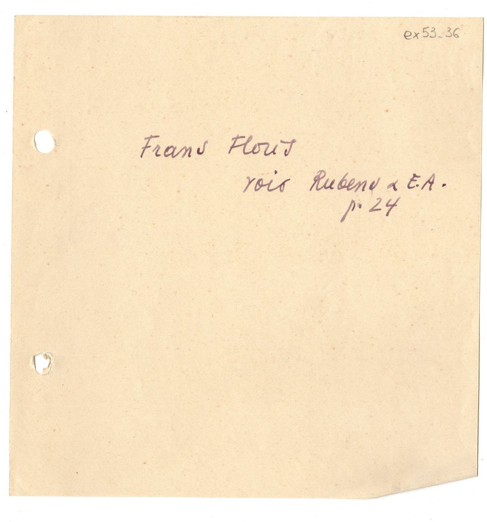 Απόκομμα, χαρτί, 15,4×15,0 εκ., με χειρόγραφη βιβλιογραφική παραπομπή για τον Φλαμανδό ζωγράφο του 16ου αιώνα Frans Floris.