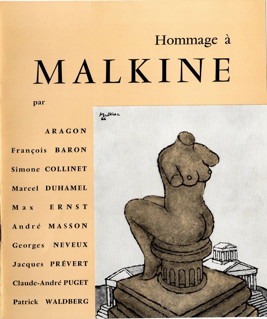 Έντυπο, χαρτί, 8 φφ, 21×17.5 εκ., στα γαλλικά, έκθεσης- αφιέρωμα στον Georges Malkine, η οποία διεξάγεται στην γκαλερί Mona Lisa στο Παρίσι. Περιέχει βιογραφικό σημείωμα, κείμενα για τον καλλιτέχνη και το έργο του και εικονογράφηση.