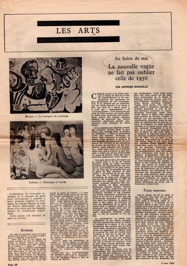 Απόκομμα, χαρτί, 2 φφ, 42×30 εκ., στα γαλλικά, δημοσίευσης κριτικής για το Salon de mai 1968.