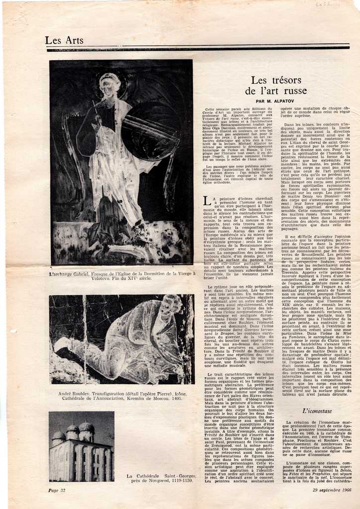Απόκομμα, χαρτί, 2 φφ, 42×30 και 9×30 εκ., στα γαλλικά, δημοσίευσης τμήματος μονογραφίας του M. Alpatov αφιερωμένης στην θρησκευτική ρωσική τέχνη.