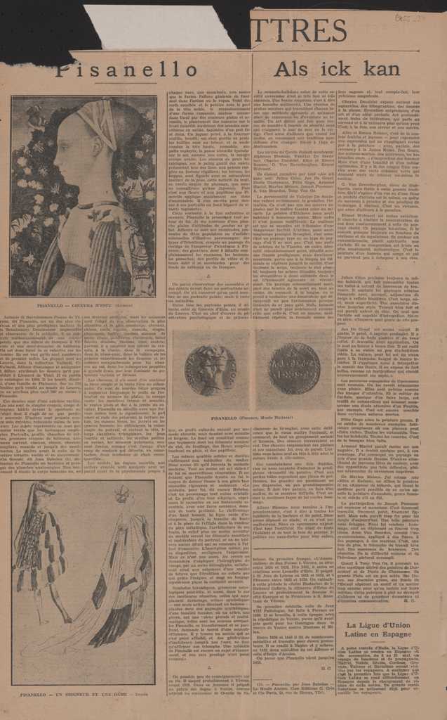 Απόκομμα, χαρτί, 50.5×32 εκ., στα γαλλικά, δημοσίευσης άρθρου αναφερόμενου στη ζωή και ζωγραφική του Pisanello. Αναγράφονται λεπτομέρειες και γίνεται αναφορά σε βιβλίο του Jean Babelon αφιερωμένο στον καλλιτέχνη.