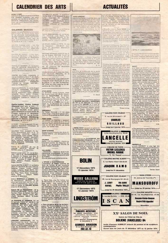 Απόκομμα, χαρτί, 43×30 εκ., στα γαλλικά, δημοσίευσης στήλης του εντύπου με εκθεσιολόγιο της περιόδου.