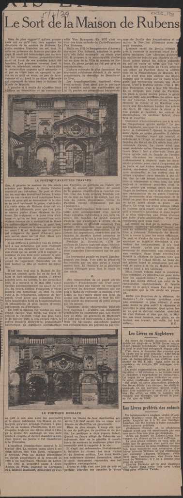 Απόκομμα, χαρτί, 54×18 εκ., στα γαλλικά, δημοσίευσης άρθρου το οποίο αναφέρεται στο σπίτι του Peter Paul Rubens.