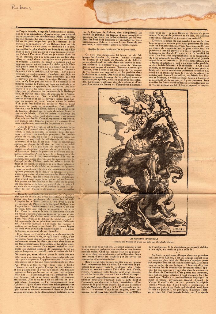 Απόκομμα, χαρτί διπλής όψης, 44×31 εκ., στα γαλλικά, δημοσίευσης άρθρου αναφερόμενου στη ζωγραφική του Peter Paul Rubens.