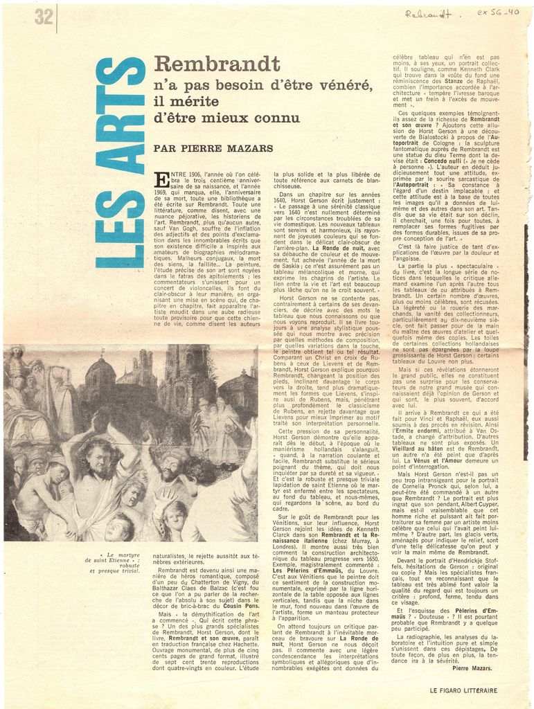 Απόκομμα, χαρτί, 36×25 εκ., στα γαλλικά, δημοσίευσης άρθρου αφιερωμένου στο εικαστικό έργο του Rembrandt. Σχολιάζονται έργα του καλλιτέχνη.