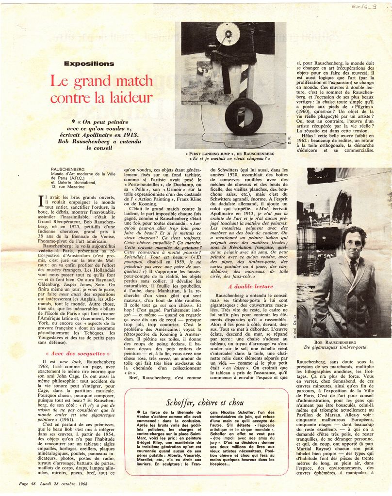 Απόκομμα, χαρτί, 2 φφ, 34×28 εκ., στα γαλλικά, δημοσίευσης κριτικής έκθεσης του Robert Rauschenberg, η οποία διεξάγεται στο Μουσείο Μοντέρνας Τέχνης στο Παρίσι (Arc). Αναγράφονται λεπτομέρειες για το περιεχόμενό της.