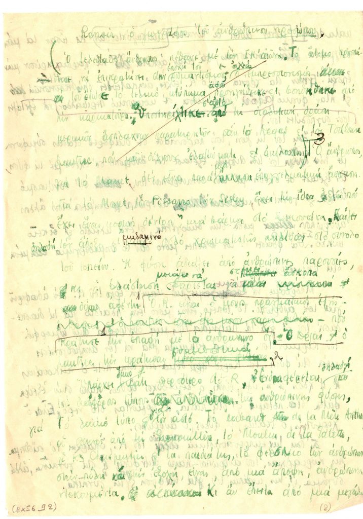 Χειρόγραφο κείμενο, χαρτί, 6 φφ, 26×19 εκ., στα ελληνικά, του Τώνη Σπητέρη αναφερόμενο στη ζωγραφική του Pierre Auguste Renoir.