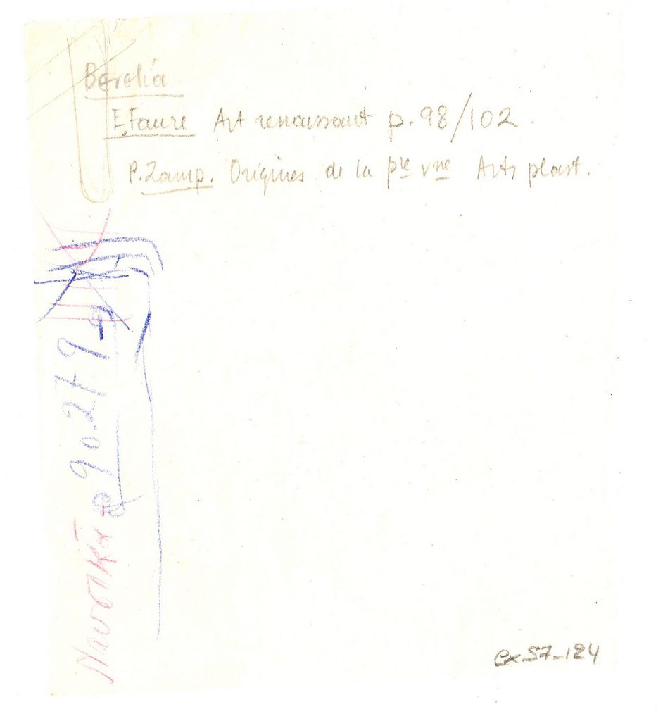 Απόκομμα, χαρτί, 11×9.5 εκ., στα γαλλικά, με χειρόγραφες σημειώσεις του Τώνη Σπητέρη (βιβλιογραφία για την Βενετία).