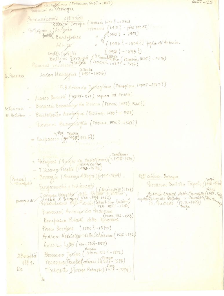 Απόκομμα, χαρτί, 30×21 εκ., στα ιταλικά, με χειρόγραφες σημειώσεις του Τώνη Σπητέρη. Αναγράφονται σημαντικοί εκπρόσωποι της ιταλικής τέχνης του 14ου- 18ου αιώνα.