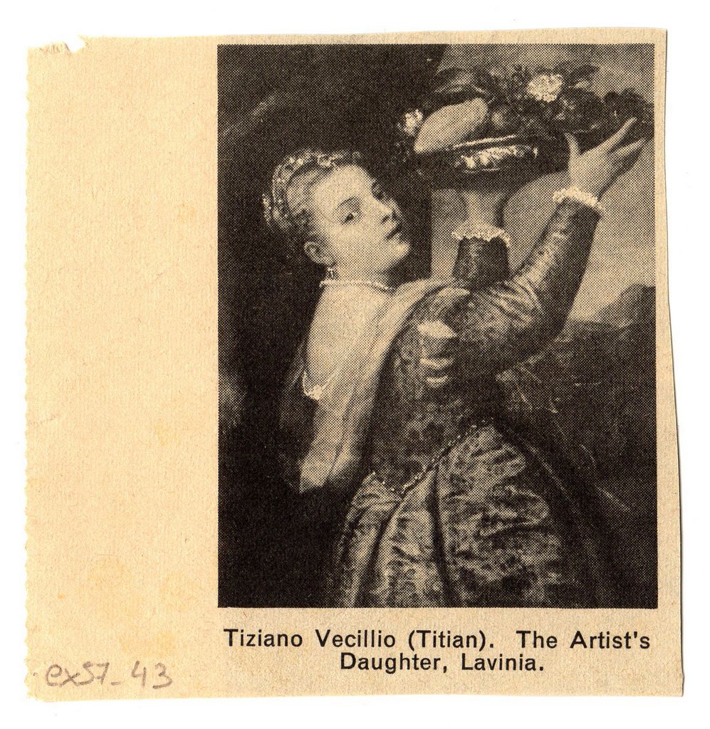 Απόκομμα, χαρτί, 9×9 εκ., με α/μ αναπαραγωγή έργου του Tiziano (Vecellio).