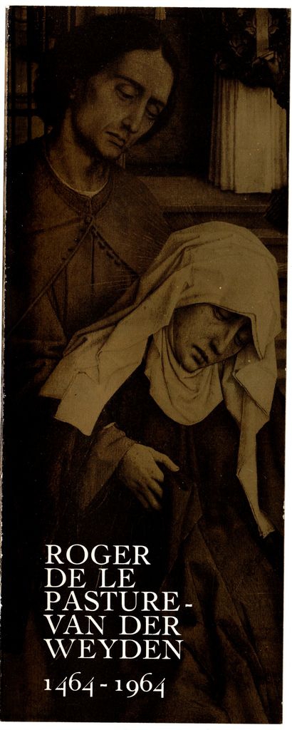 Έντυπο, χαρτόνι πολύπτυχο, 20×8 εκ, στα γαλλικά και ολλανδικά, αναδρομικής έκθεσης- αφιερώματος στον Rogier van der Weyden. Στο έντυπο αναγράφονται λεπτομέρειες για διαλέξεις που διοργανώνονται στην Tournai για τον καλλιτέχνη και το έργο του και για δύο μεγάλες παράλληλες εκθέσεις έργων του στον καθεδρικό ναό της πόλης. Αφορμή για το αφιέρωμα η συμπλήρωση 500 χρόνων από τον θάνατό του.