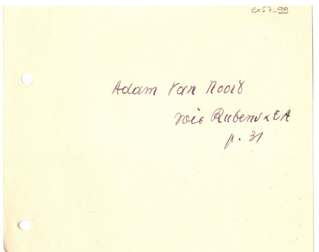 Απόκομμα, χαρτί, 15×15 εκ., στα γαλλικά, με χειρόγραφη σημείωση- παραπομπή για τον Adam van Noort (νεώτερο ή πρεσβύτερο).