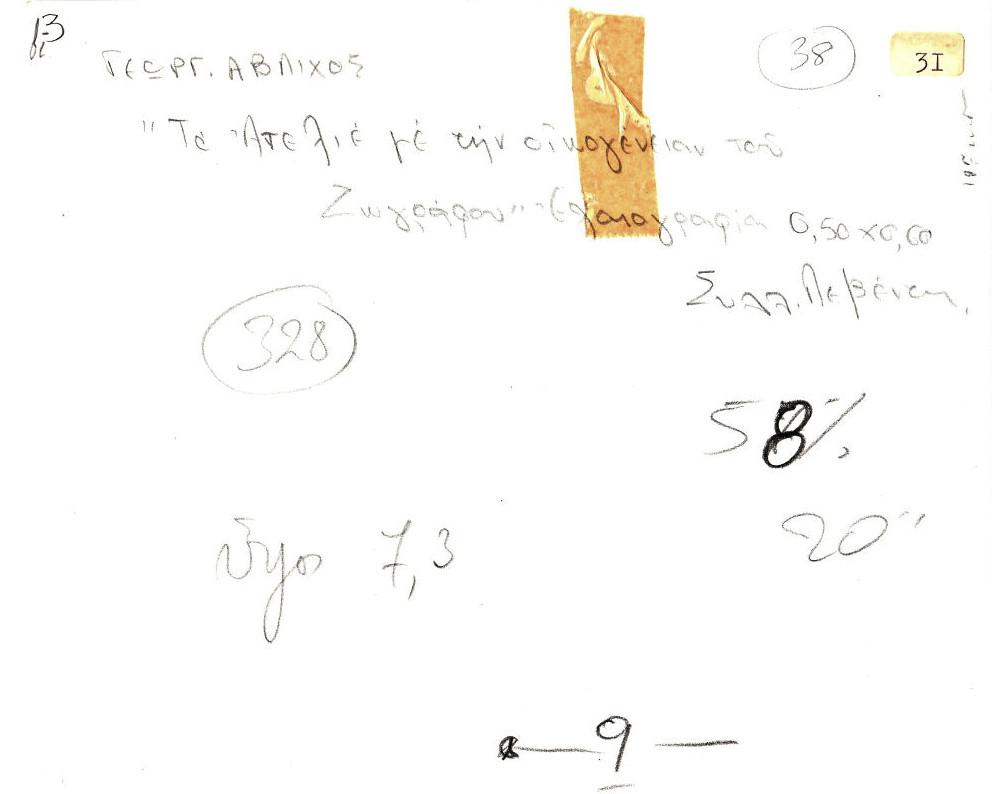 Εκτυπωμένη φωτογραφία έργου του Γεώργιου Άβλιχου. Στην πίσω όψη, επιγραφές.