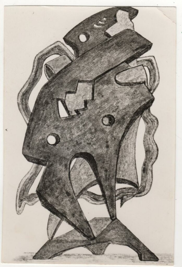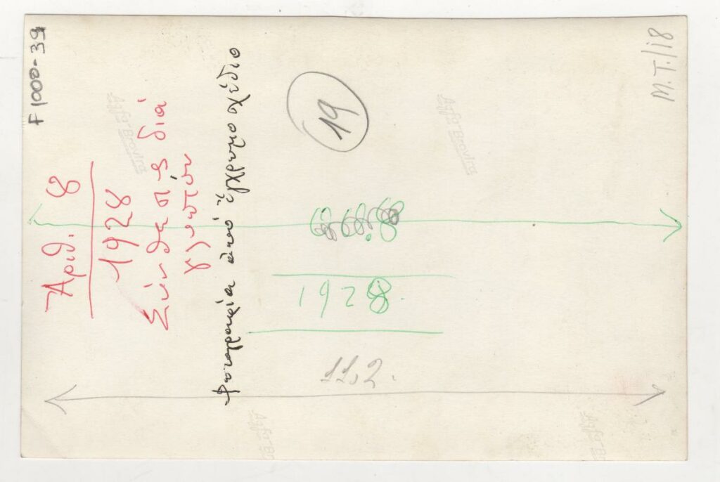Ασπρόμαυρη εκτυπωμένη φωτογραφία έργου του Μιχάλη Τόμπρου. Στην πίσω όψη, επιγραφές.