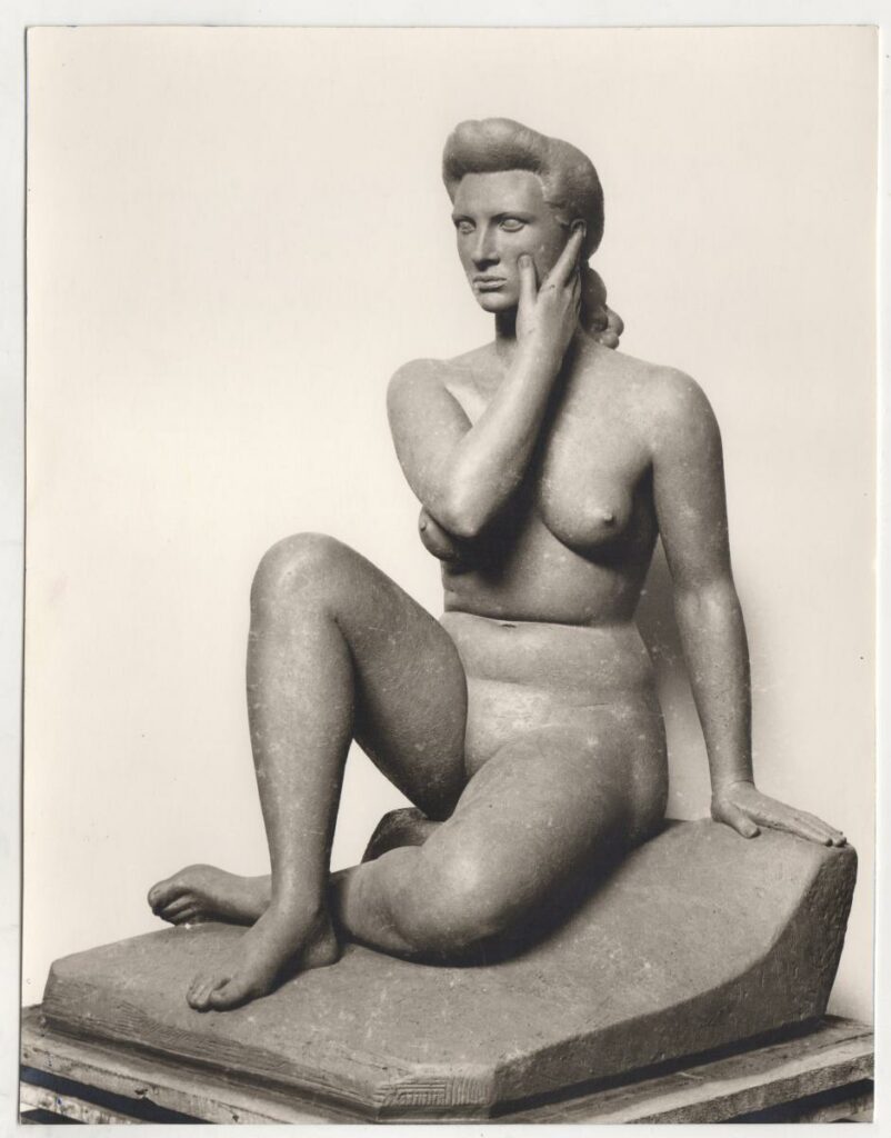 Ασπρόμαυρη εκτυπωμένη φωτογραφία έργου του Μιχάλη Τόμπρου. Στην πίσω όψη, επιγραφές.