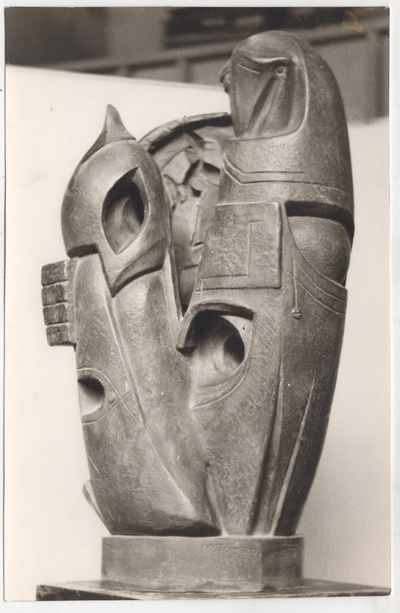 Ασπρόμαυρη εκτυπωμένη φωτογραφία έργου του Μιχάλη Τόμπρου. Στην πίσω όψη, επιγραφές.