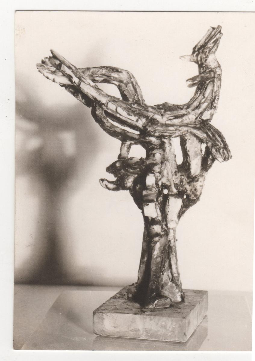 Ασπρόμαυρη εκτυπωμένη φωτογραφία έργου του Μιχάλη Τόμπρου. Στην πίσω όψη, επιγραφές.