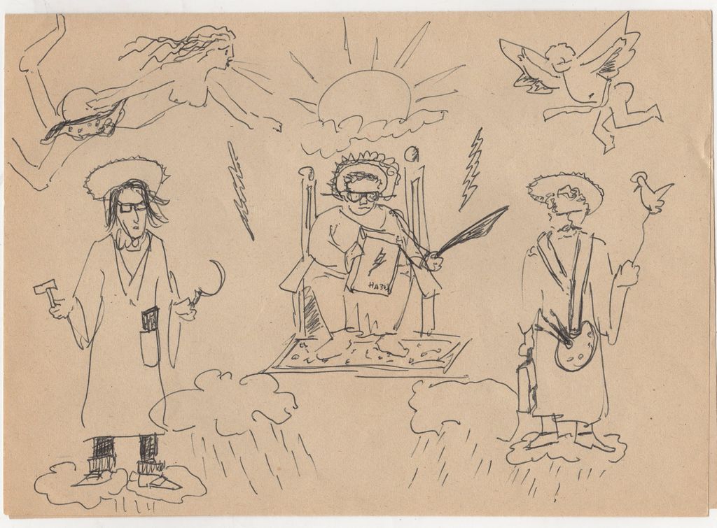 Σχέδιο του Γιώργου Τουζένη, χαρτί με μαύρο μελάνι.