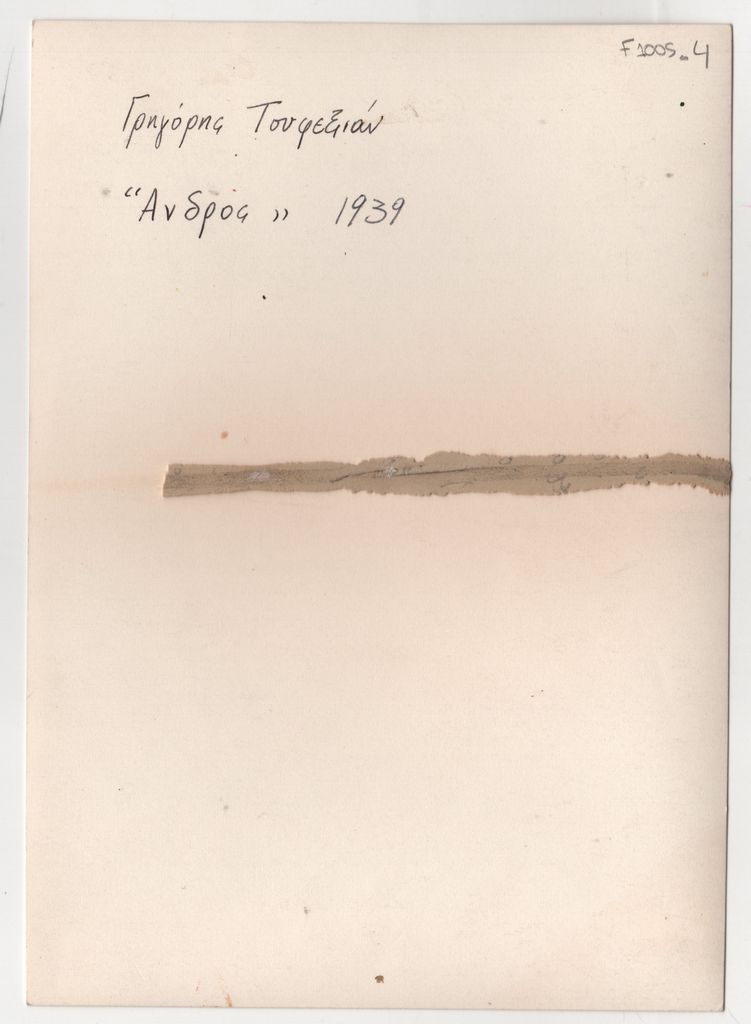 Φωτογραφία, α/μ, φωτογραφικό χαρτί, 17,5×12,5 εκ. Αναπαραγωγή έργου του Γρηγόρη Τουφεξιάν. Στην πίσω όψη, επιγραφή με τα στοιχεία του έργου.